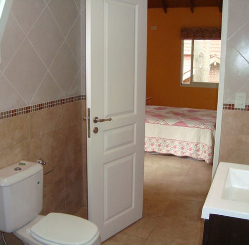 Habitación matrimonial amplio, con cama somier, placard, baño completo en suite, ventilador de techo, TV LED de 32” por sistema de cable y reproductor de DVD.-